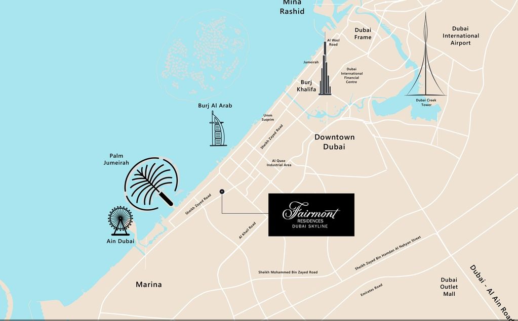 The location of Fairmont Residences Dubai Skyline is ideal for those who want to be close to the city’s key attractions. Including the Dubai Mall, Burj Khalifa, and Dubai Fountain. The project is also conveniently located near major transportation routes, making it easy to access the rest of the city.